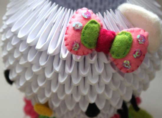 Modulêre origami kat - 'n skema van die samestelling van die bekende Kitty