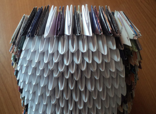 Vir werk benodig ons modules van wit kleur (588 stukke), pienk (132 stukke) en groen (14 stukke). Vir versiering gebruik ons vilt.