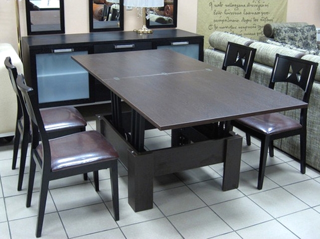 Die transformator tafel vir 'n klein kombuis is 'n soort reddingsboei, wat 'n klein kamer kan red van 'n lywige ding wat net 'n paar keer in 'n maand gebruik word. Dit geld veral vir 'n bachelor of 'n klein familie, wanneer 90% van die gevalle by die tafel net 'n paar mense bymekaarkom, en die eienaars woon in 'n standaard eenkamer woonstel. Brei indien nodig, so 'n produk sal nie vir die kind moeilik wees nie, dus die onverwagte aankoms van gaste na jou is 'n spesiale moeite waarby meubels nie sal bring nie.